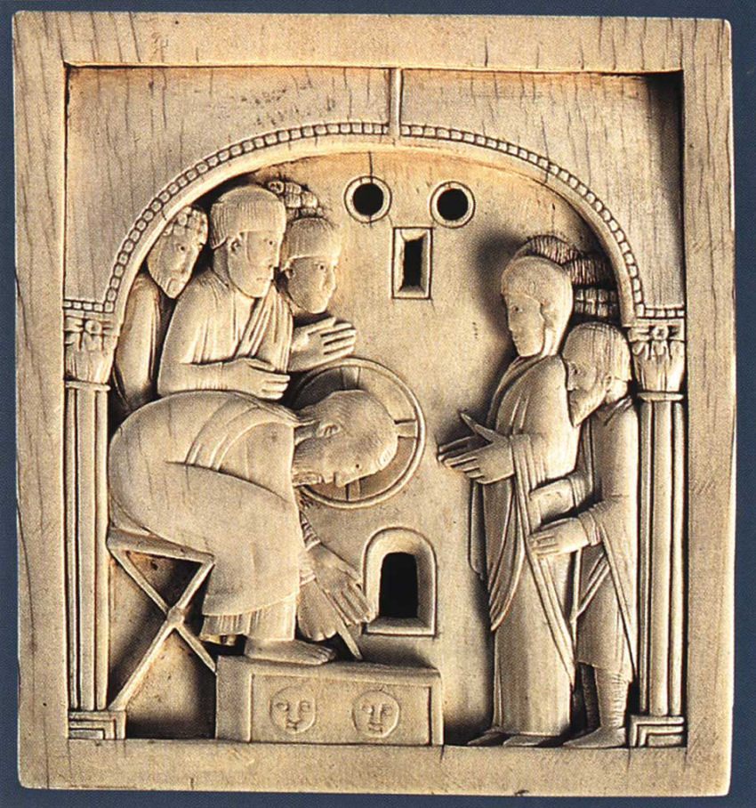>Magdeburg Ivories. Commissioned by Emperor Otto I for the Magdeburg Cathedral in Magdeburg, Germany. 968. Artist unknown. Retrieved 5/22/20 from: https://en.wikipedia.org/wiki/Magdeburg_Ivories